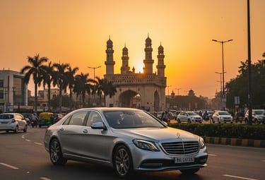 Hourly and distance-based cab hire for local Hyderabad trips. Perfect for meetings, shopping, or city tours.